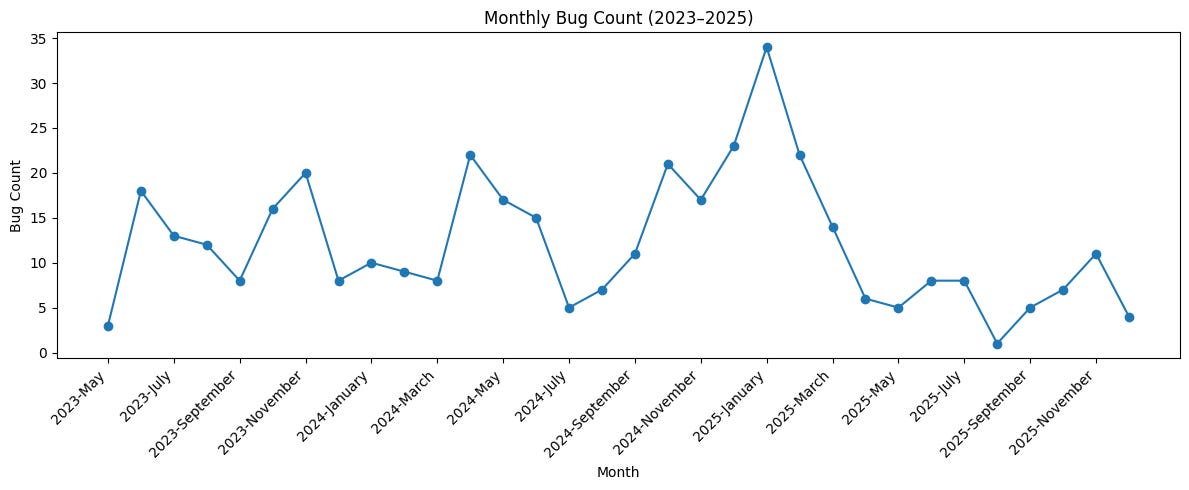 I will not get into all the interesting patterns captured in this graph. The point I wanted to illustrate is that after we introduced Engineering Pods and other changes described in the previous two posts we have seen a sharp decrease in bug count. We haven’t changed our testing or bug reporting practices during this time. We also have a zero-bug policy - we address bugs no later than the next sprint and it’s not unusual to fix them immediately.
